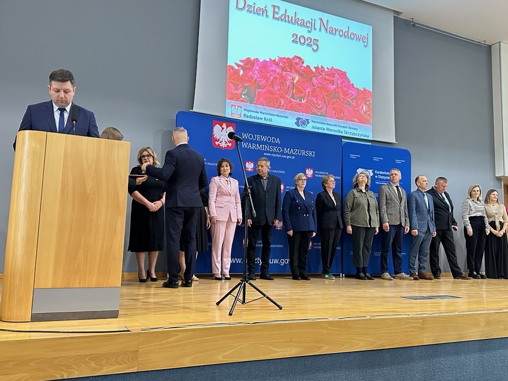 14 października 2025 r. w Kancelarii Prezesa Rady Ministrów w Warszawie i 17 października 2025 r. w Warmińsko-Mazurskim Urzędzie Wojewódzkim w Olsztynie odbyły się uroczystości z okazji Dnia Edukacji Narodowej, podczas których wręczono Złote Medale za Długoletnią Służbę i Medale Komisji Edukacji Narodowej oraz Nagrodę Warmińsko-Mazurskiego Kuratora Oświaty. Naszą szkołę reprezentowała wyjątkowo liczna grupa nagrodzonych – to dla nas ogromne wyróżnienie i potwierdzenie wysokiej jakości pracy całego zespołu!