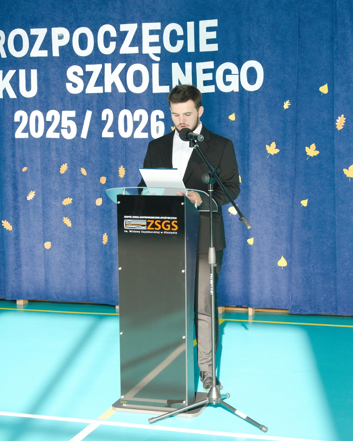Uroczystość rozpoczęcia roku szkolnego poprowadził uczeń klasy 3Tl Bartosz Frydrych.