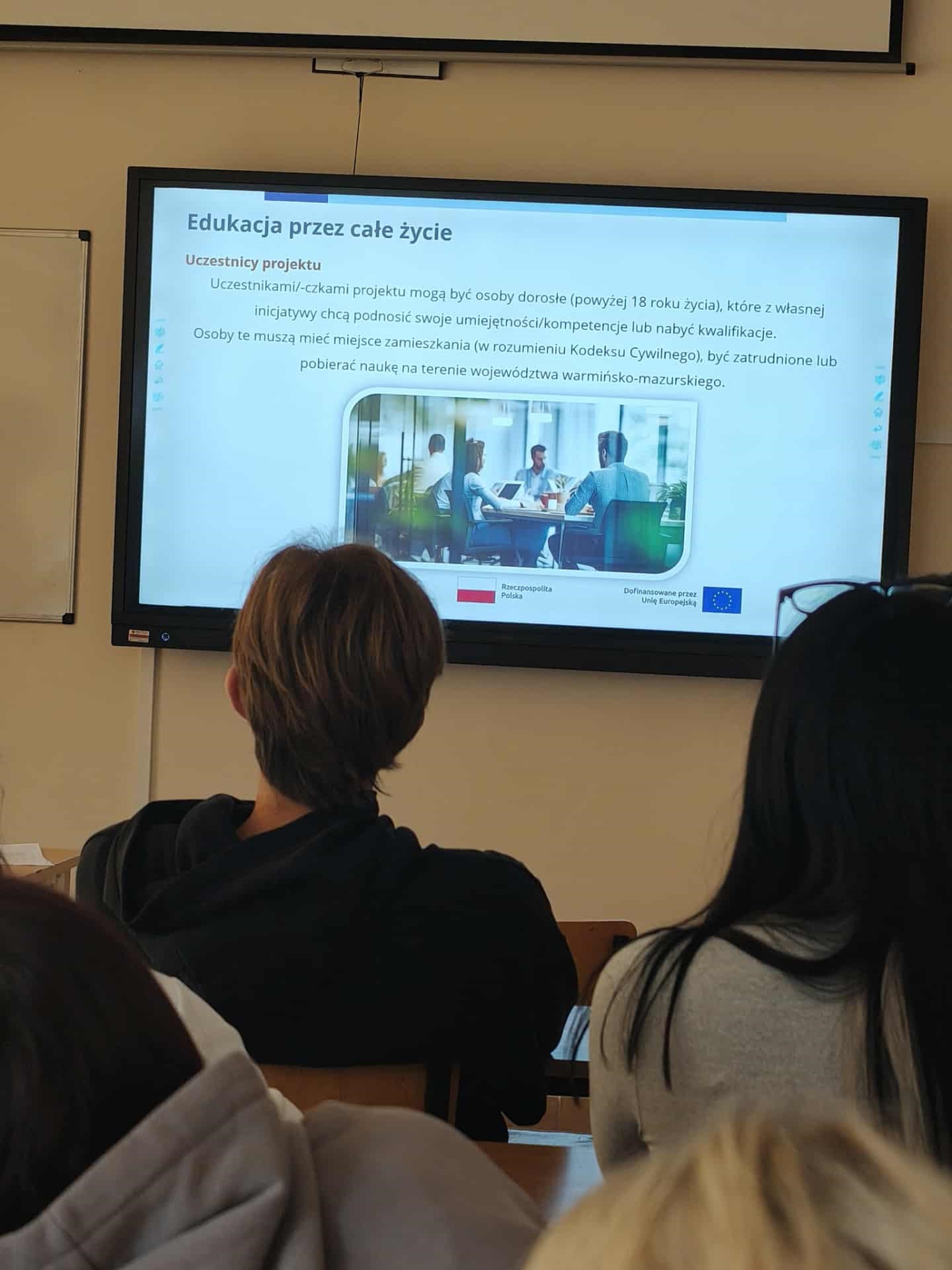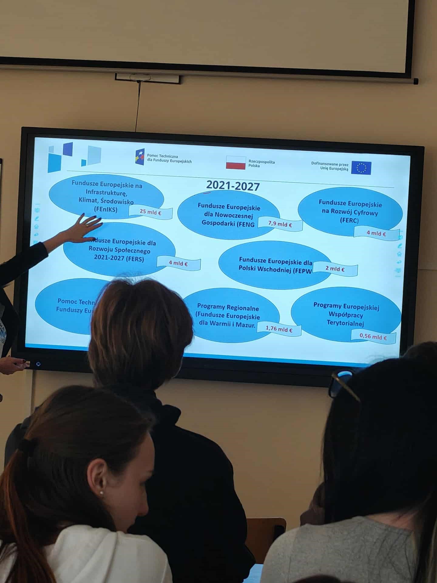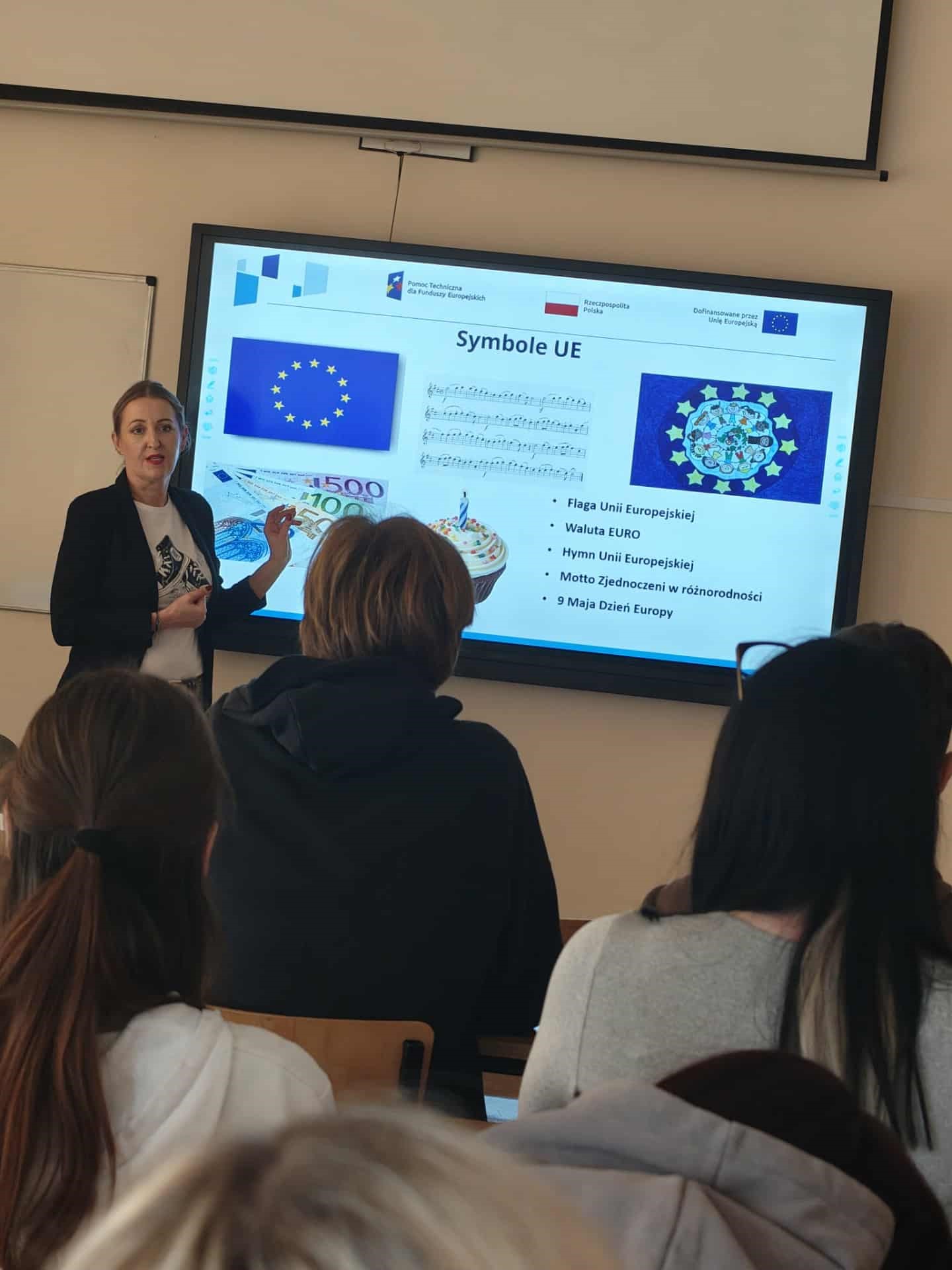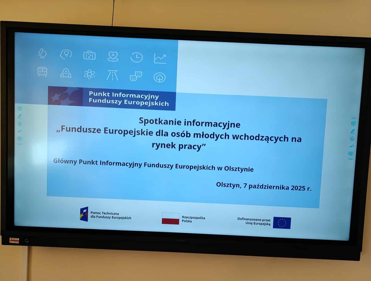 7 października 2025 r. w naszej szkole odbyło się spotkanie informacyjne dla młodzieży, w tym uczniów klas maturalnych, poświęcone Funduszom Europejskim oraz możliwościom wsparcia oferowanym uczniom i absolwentom szkół średnich. Spotkanie poprowadziły konsultantki Głównego Punktu Informacyjnego Funduszy Europejskich z Urzędu Marszałkowskiego Województwa Warmińsko-Mazurskiego w Olsztynie.