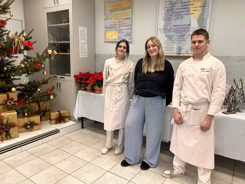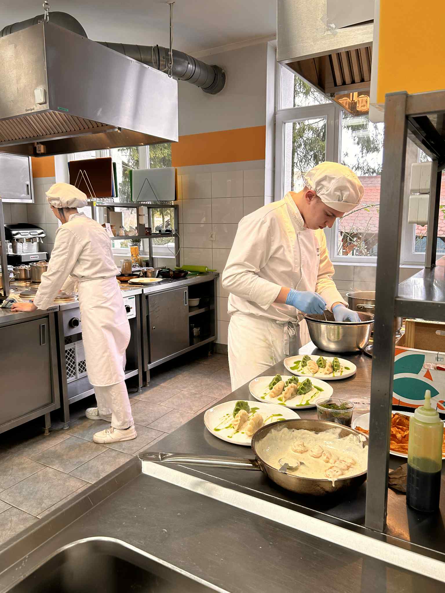 Naszą szkołę reprezentowali Ewelina Berent z klasy 2Tab oraz Bartosz Bastek z klasy 3Tb. Nasi uczniowie zaprezentowali wyjątkowe danie: pierogi z sandaczem i wędzonym twarogien, podane z sosem na bazie krewetek oraz chipsem z marchewki.