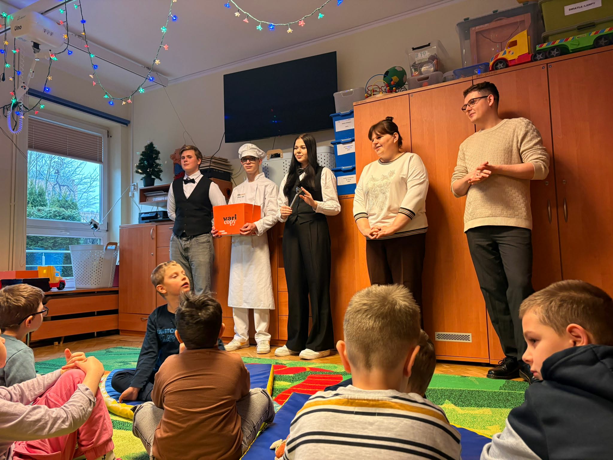 5 grudnia 2025 r. delegacja naszej szkoły odwiedziła Przedszkole „Dobry Start” w Olsztynie. Celem wizyty była nie tylko promocja naszej placówki, ale przede wszystkim przybliżenie najmłodszym tajników pracy w gastronomii oraz Kwalifikacyjnych Kursów Zawodowych.