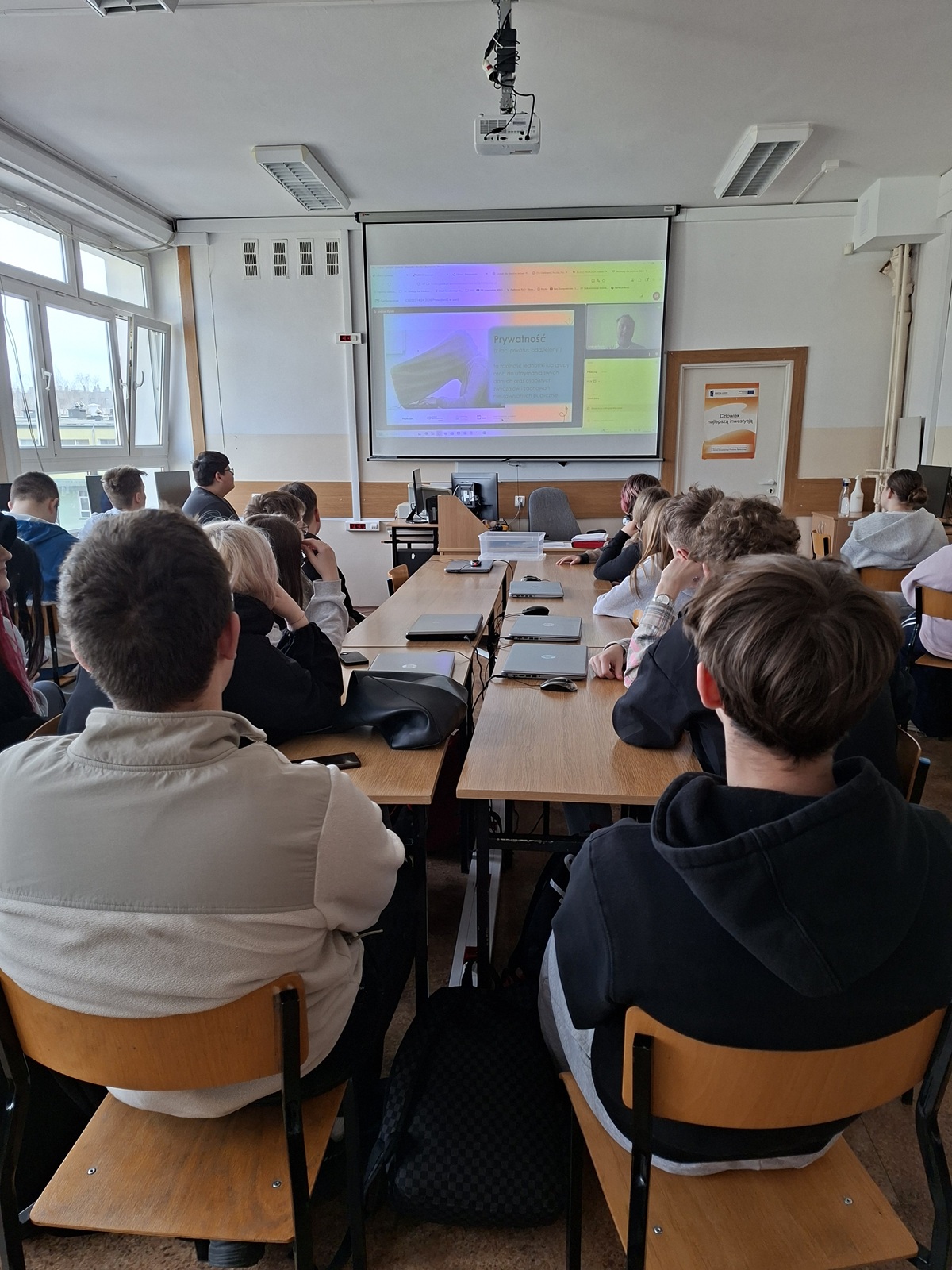 Podczas lekcji uczniowie analizowali swoje codzienne nawyki cyfrowe oraz poznawali skuteczne sposoby ochrony prywatności w świecie zdominowanym przez media społecznościowe i aplikacje internetowe.