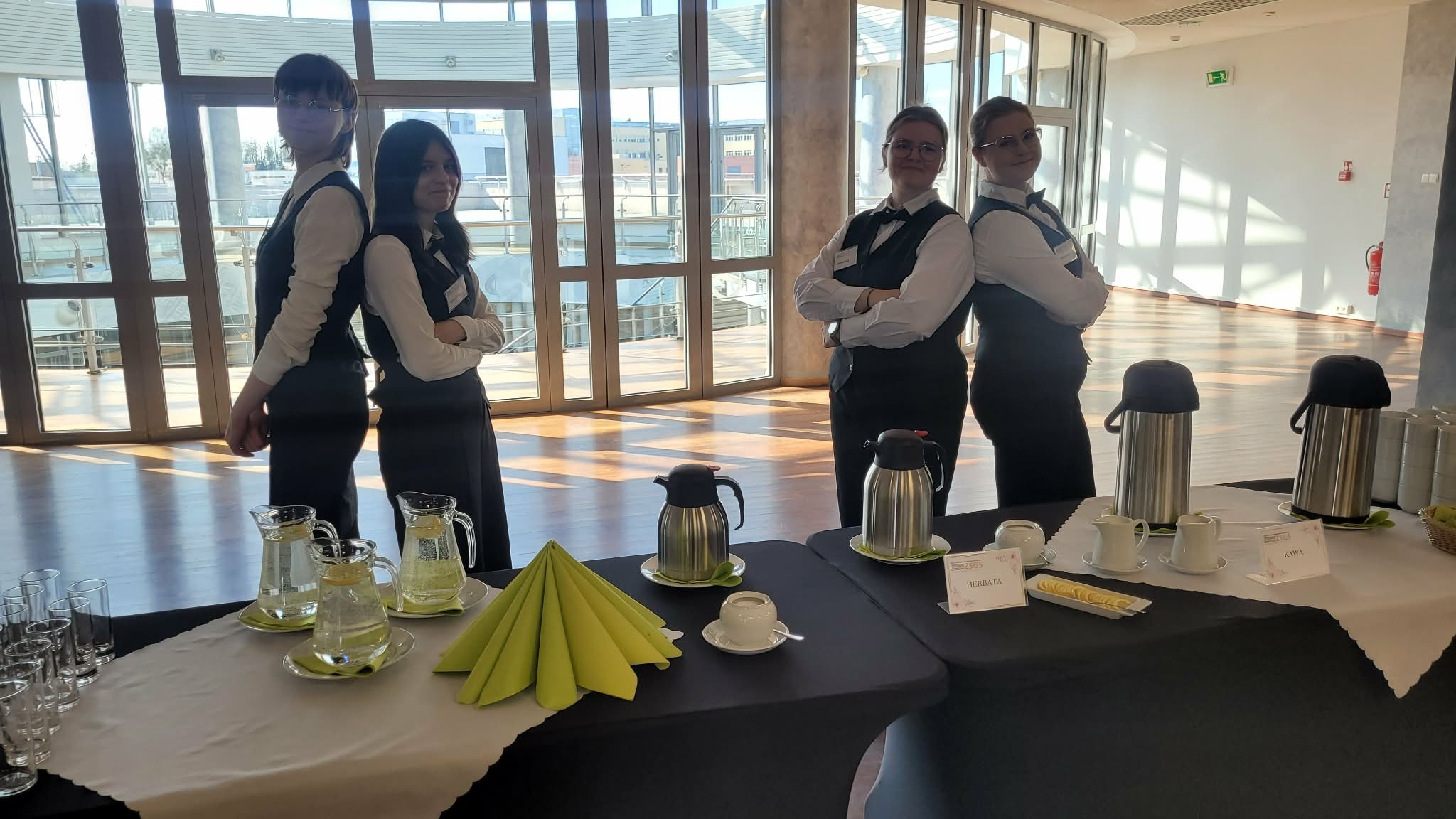 - Uczennice z 4Ta gotowe do obsługi kelnerskiej