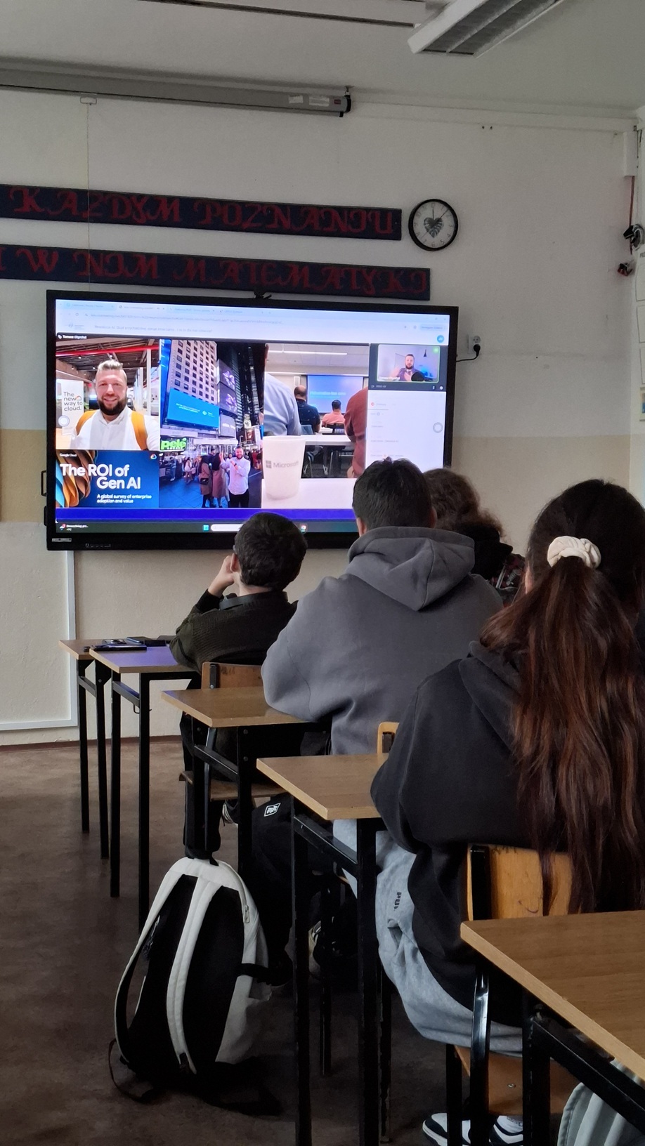 24 listopada 2025 r. uczniowie naszej szkoły wzięli udział w interaktywnym wykładzie online prowadzonym przez eksperta AI, Tomasza Chyrchela. Podczas spotkania omówiono najważniejsze trendy w rozwoju sztucznej inteligencji, jej praktyczne zastosowania oraz wyzwania, które stoją przed nami w najbliższych latach.
