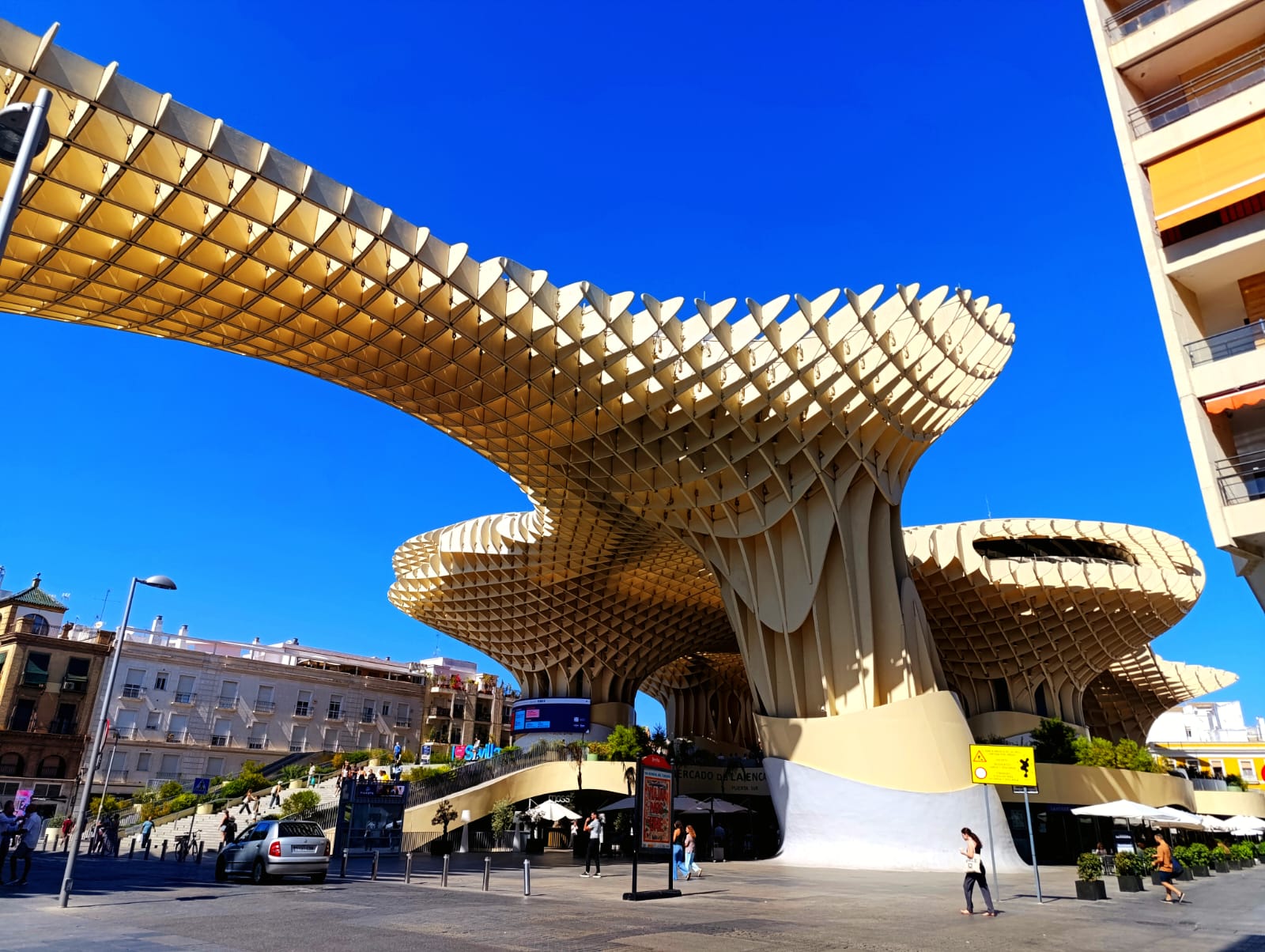 Młodzież podziwiała panoramę Sewilli z punktu widokowego Las Setas do Sewilla, największej drewnianej konstrukcji na świecie, składającej się z sześciu dużych parasoli w kształcie grzybów.