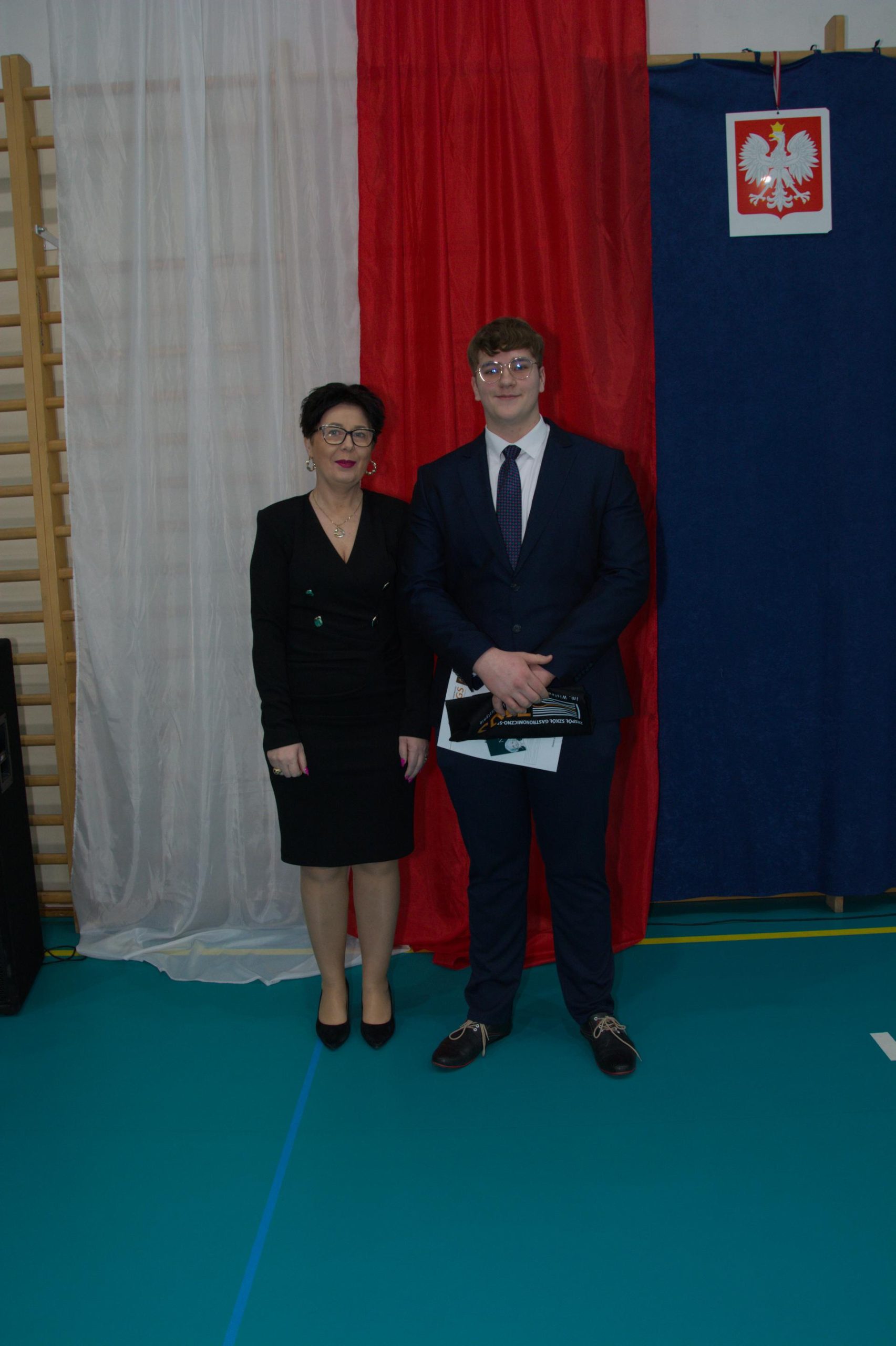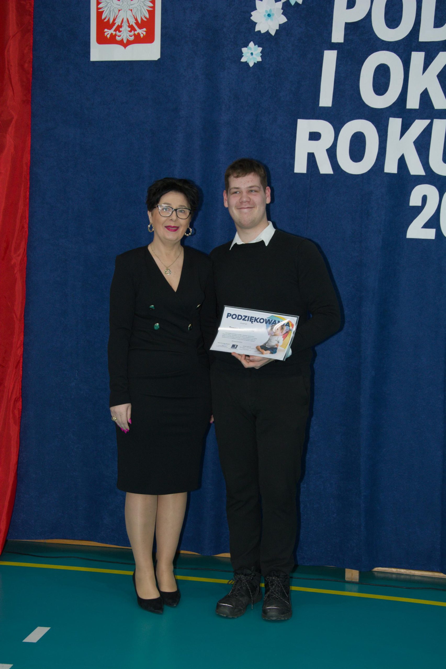 - Kamil Pazdrijowski – uczeń z najwyższą średnią ocen w szkole z Panią Dyrektor Wiolettą Różą Rutkowską