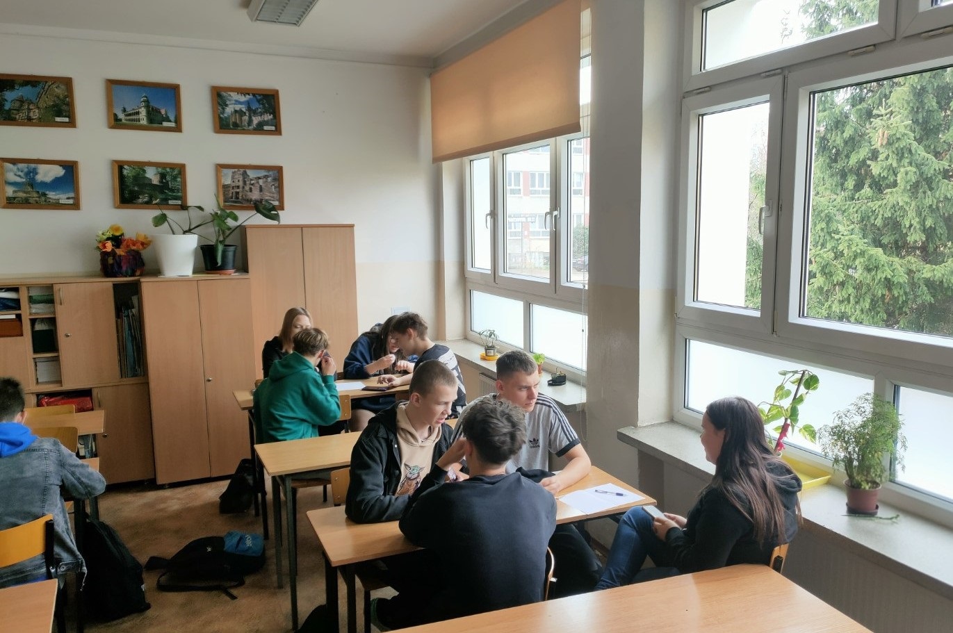 W klasach pierwszych na lekcjach kształtowania kompetencji zawodowych odbyły się warsztaty na temat „Czy ludzie mogą być źródłem inspiracji, czy raczej przeszkadzają w karierze?”. Uczniowie pracując w grupach analizowali korzyści płynące z pracy z ludźmi oraz potencjalne trudności wynikające ze współpracy w zespole.