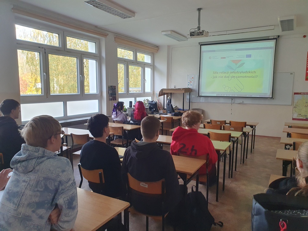 Wychowawcy zaprezentowali uczniom prezentację multimedialną przygotowaną przez powiatowych koordynatorów doradztwa zawodowego, poświęconą sile relacji międzyludzkich.