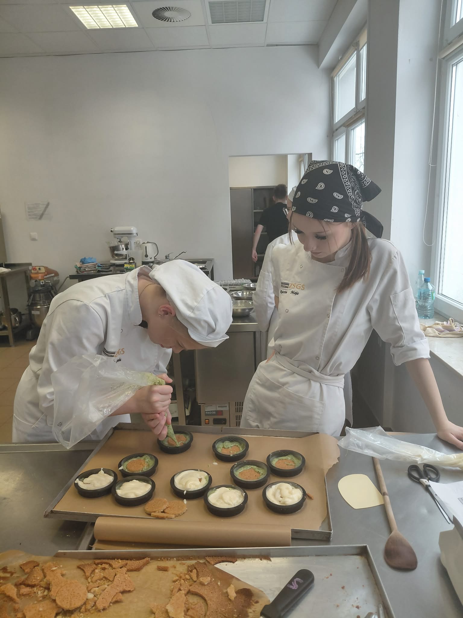 - Uczennica nadziewa tartaletki kremem miętowym