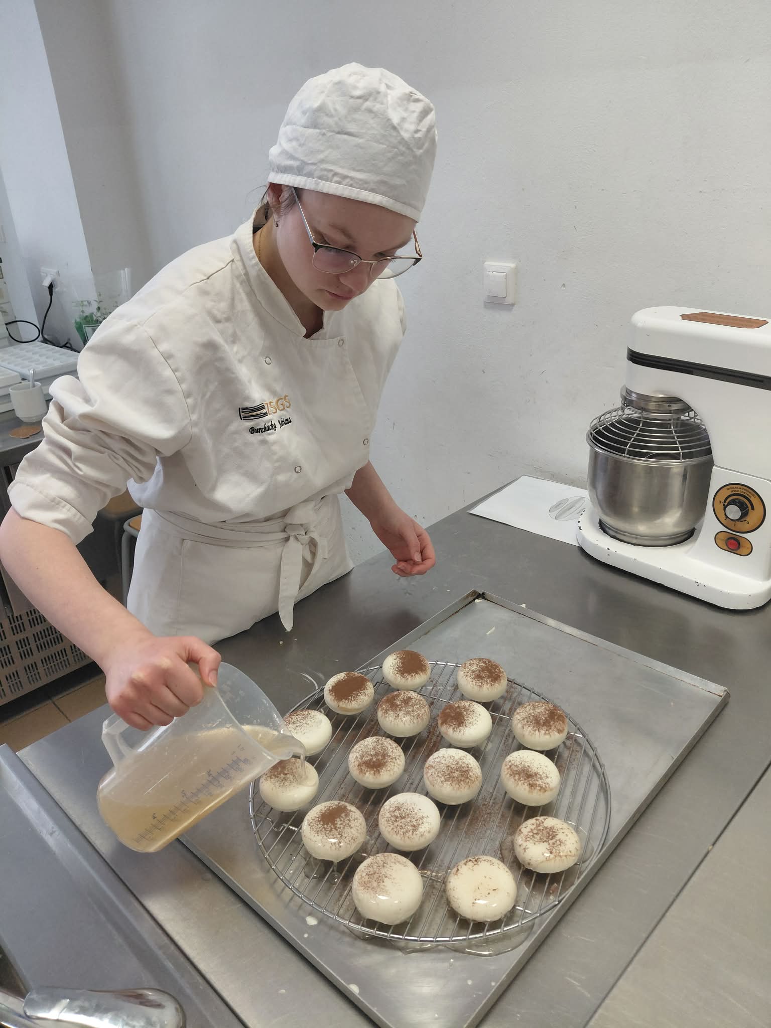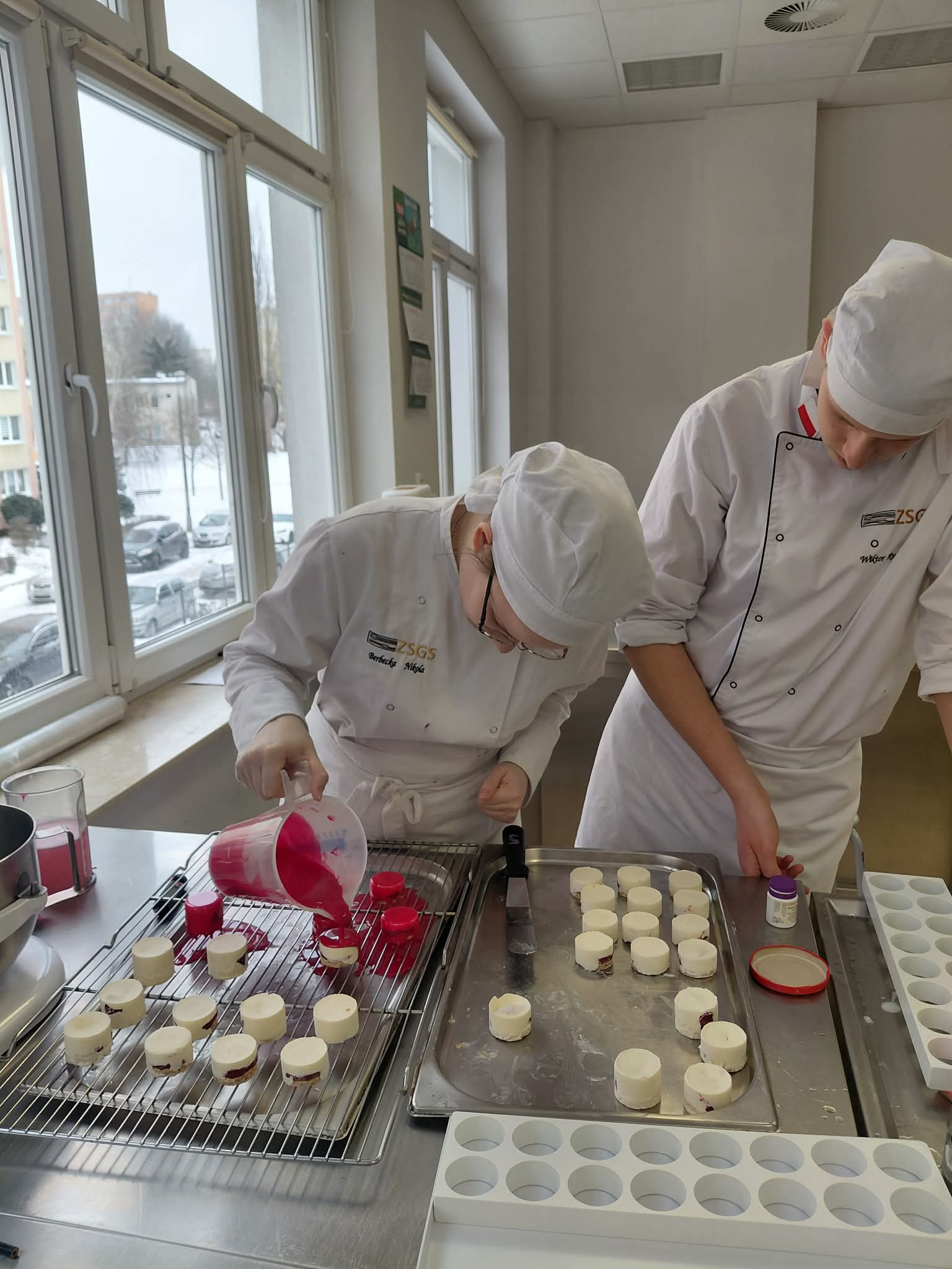 - Uczennica oblewa monoporcje polewą Mirror Cassis
