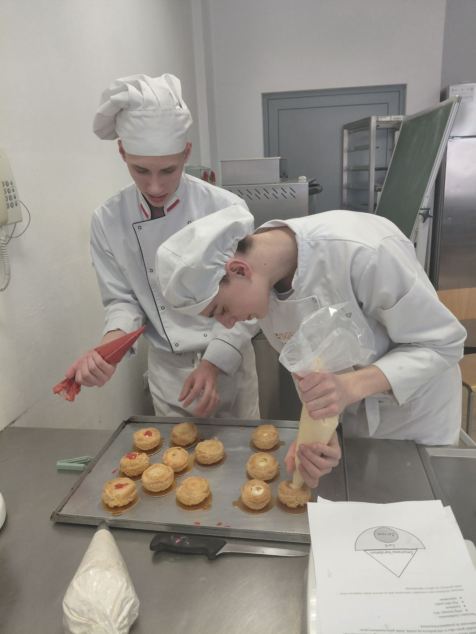 - Uczniowie nadziewają ptysie curd cytrynowym i żelką truskawkową
